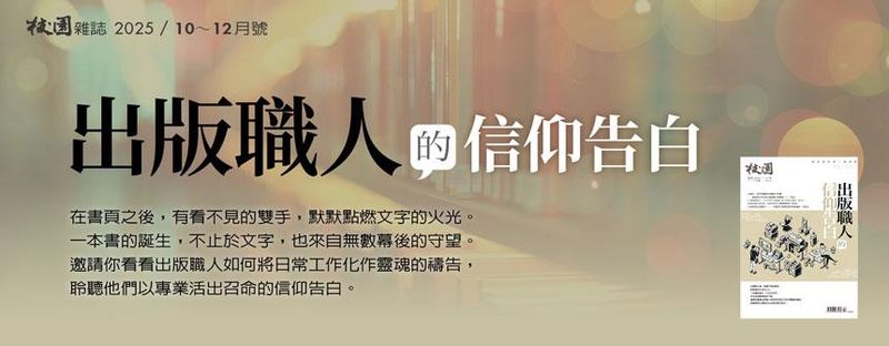 因此 , 本期雜誌以 「 出版職人的信仰告白 」 為題 。 因為在今天的世界 , 文字工作者承擔的不只是專業角色 , 更是信仰與文化的實踐 。
