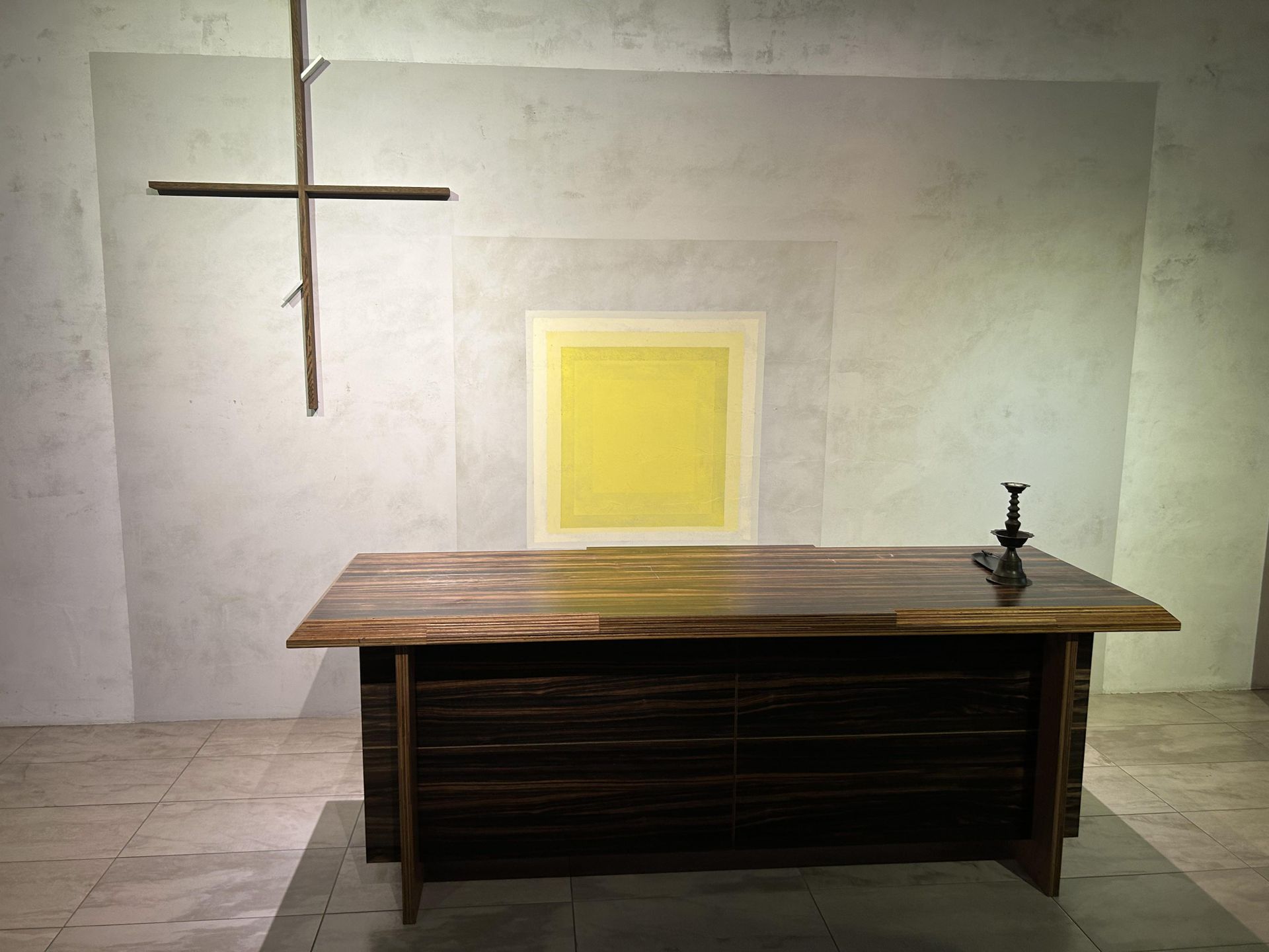 ▎禮賢會台北堂禮堂的祭台,由馮君藍牧師設計。