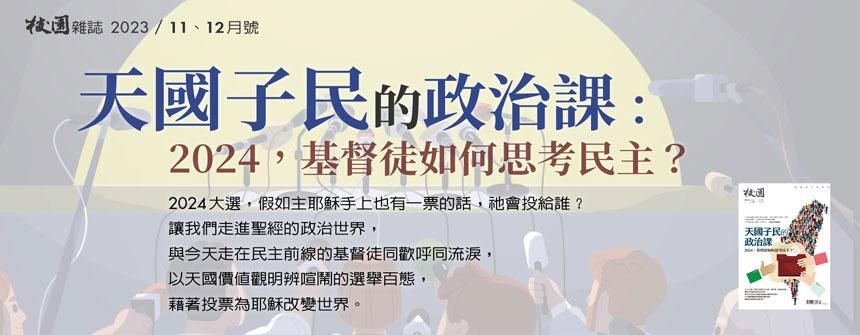 ——本文原標題為〈【投票前政治通識①】左右派作為上帝的「左右手」:一個聖經神學觀點〉,刊載於《校園》2023年11、12月號「天國子民的政治課:2024,基督徒如何思考民主?」,頁24~27。